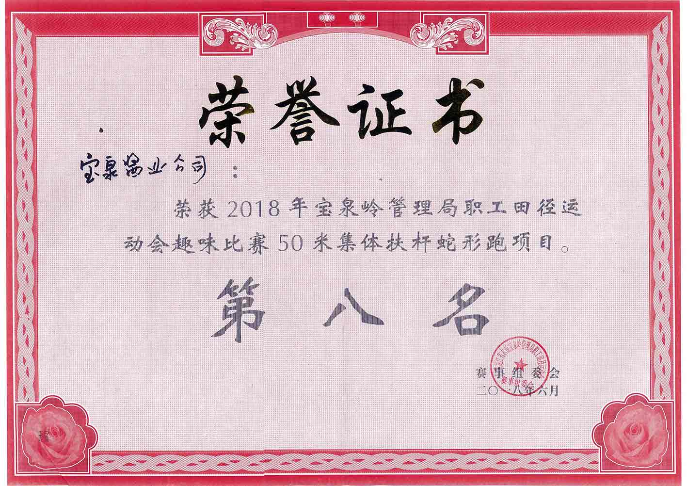 管理局運(yùn)動(dòng)會(huì)集體扶桿蛇形跑項(xiàng)目第八名
